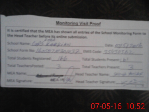 | Attendance Register | Head Teacher | MEA with School | Visit Proof |