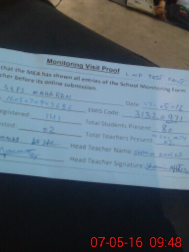 | Certified that this School was Inspected by the Undersigned MEA/DMO Today and the Information Stated Above is as Per Record. | |||||