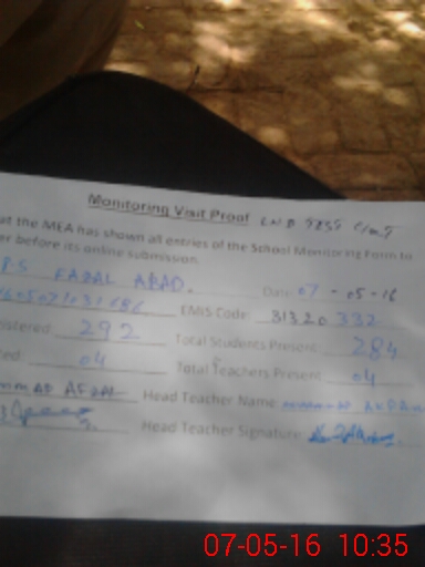 | EMIS Code: 31320332 | Name of School: GPS FAZAL ABAD | |||