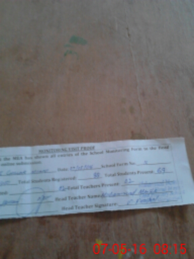 | Attendance Register | Head Teacher | MEA with School | Visit Proof |