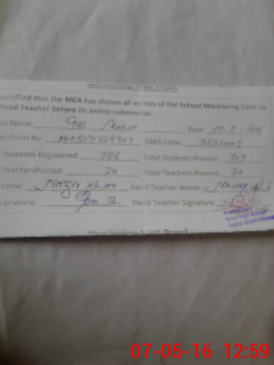 | Name: Za**** Sh**** Designation: (School Headmaster's/Headmistress's) PRINCIPLE Phone/Cell Number: 03**** |