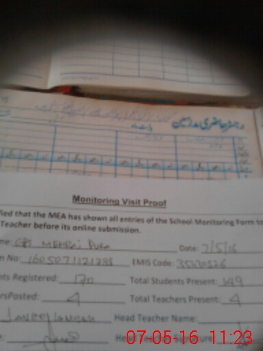 | Attendance Register | Head Teacher | MEA with School | Visit Proof |