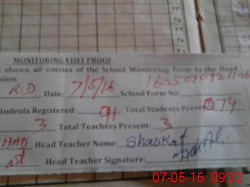 | Attendance Register | Head Teacher | MEA with School | Visit Proof |