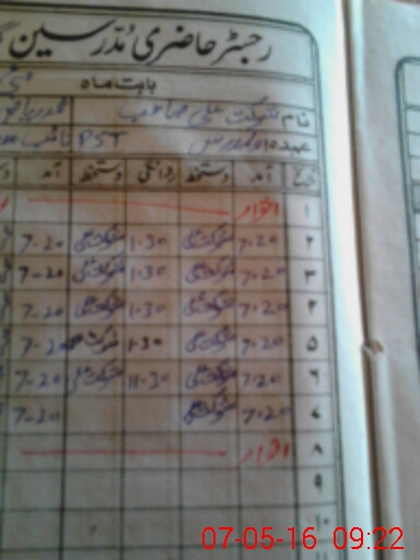 | CNIC | Full Name | Designation | R/C | Absence During Last Calender Month |