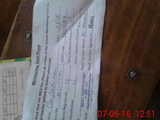 | Attendance Register | Head Teacher | MEA with School | Visit Proof |