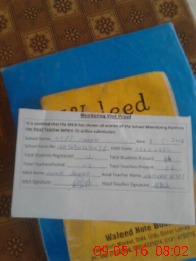 | Attendance Register | Head Teacher | MEA with School | Visit Proof |