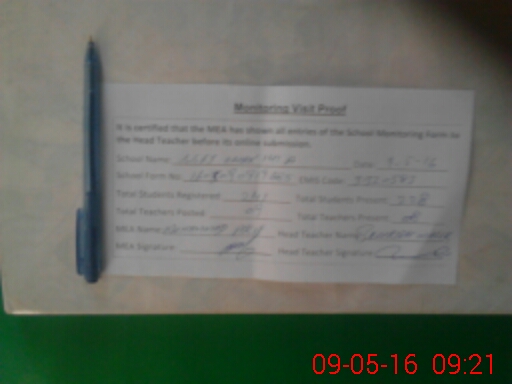 | Certified that this School was Inspected by the Undersigned MEA/DMO Today and the Information Stated Above is as Per Record. | |||||