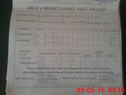 | Attendance Register | Head Teacher | MEA with School | Visit Proof |