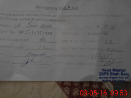 | EMIS Code: 31330484 | Name of School: GPS SHAH BAIG | |||