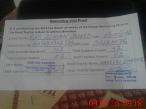 | EMIS Code: 36120076 | Name of School: GPS SOMAN JADEED P/O AGAR KHANI MOZA SOMAN | |||