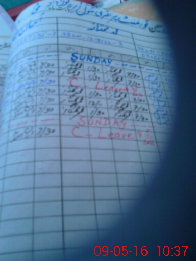 | CNIC | Full Name | Designation | R/C | Absence During Last Calender Month |