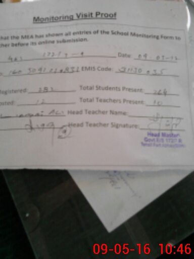 | Attendance Register | Head Teacher | MEA with School | Visit Proof |