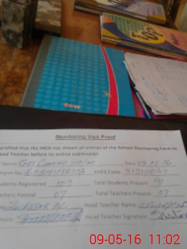 | Attendance Register | Head Teacher | MEA with School | Visit Proof |