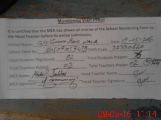 | EMIS Code: 32330660 | Name of School: GPS BAIR WALA | |||