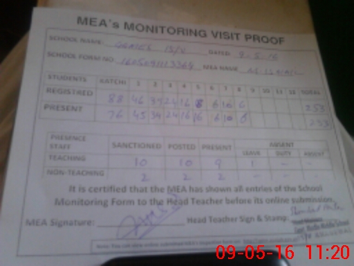 | Attendance Register | Head Teacher | MEA with School | Visit Proof |
