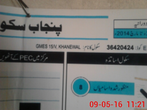 | EMIS Code: 36420424 | Name of School: GMES 15/V, KHANEWAL | |||