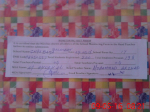 | EMIS Code: 38450557 | Name of School: GMPS BAGA BALOCHAN | |||