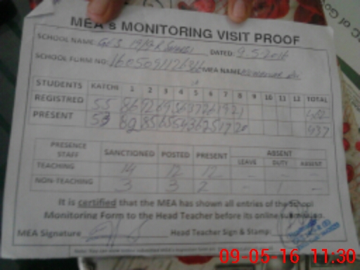 | Attendance Register | Head Teacher | MEA with School | Visit Proof |