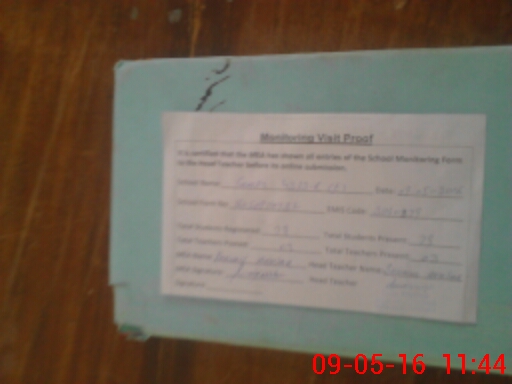 | Attendance Register | Head Teacher | MEA with School | Visit Proof |
