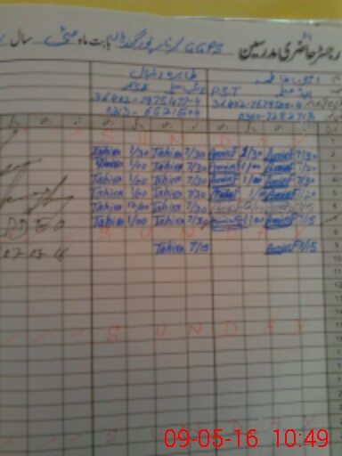 | CNIC | Full Name | Designation | R/C | Absence During Last Calender Month |