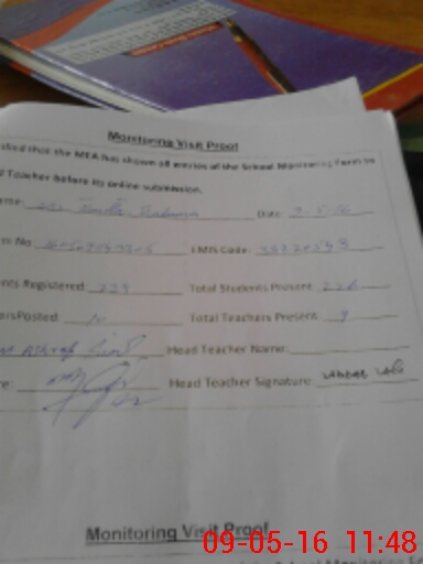 | Attendance Register | Head Teacher | MEA with School | Visit Proof |