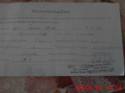 | Certified that this School was Inspected by the Undersigned MEA/DMO Today and the Information Stated Above is as Per Record. | |||||