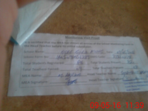 | Attendance Register | Head Teacher | MEA with School | Visit Proof |