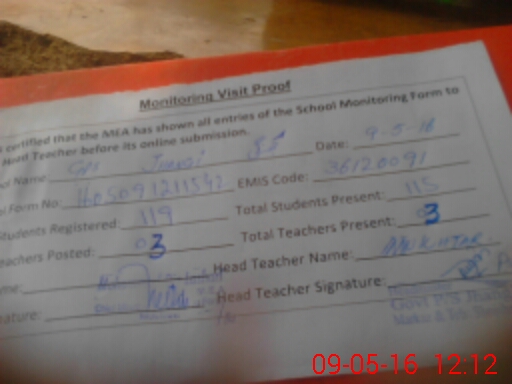 | Attendance Register | Head Teacher | MEA with School | Visit Proof |