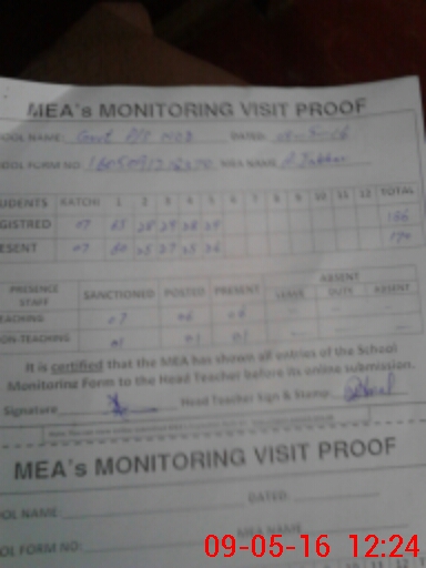 | Attendance Register | Head Teacher | MEA with School | Visit Proof |
