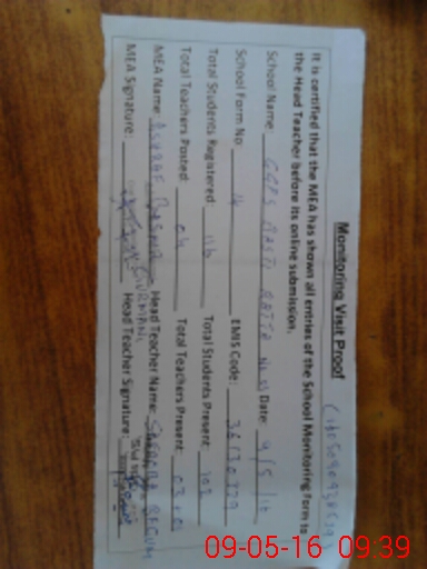 | Certified that this School was Inspected by the Undersigned MEA/DMO Today and the Information Stated Above is as Per Record. | |||||