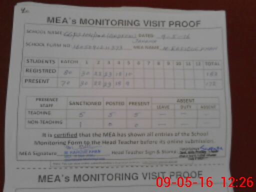 | Certified that this School was Inspected by the Undersigned MEA/DMO Today and the Information Stated Above is as Per Record. | |||||