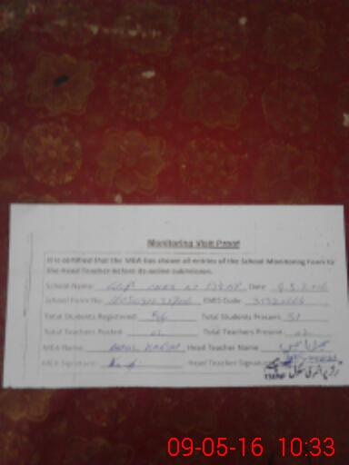 | Certified that this School was Inspected by the Undersigned MEA/DMO Today and the Information Stated Above is as Per Record. | |||||