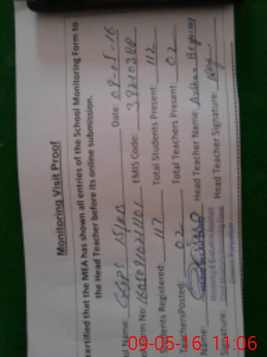 | Certified that this School was Inspected by the Undersigned MEA/DMO Today and the Information Stated Above is as Per Record. | |||||