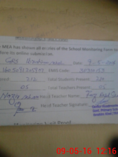 | EMIS Code: 38310153 | Name of School: GPS IBRAHIM KHEL PO TRAGH ISA KHEL MIANWALI | |||