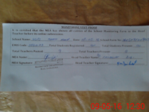 | Attendance Register | Head Teacher | MEA with School | Visit Proof |