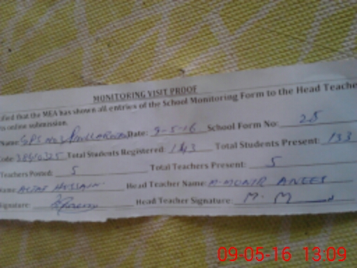 | Attendance Register | Head Teacher | MEA with School | Visit Proof |