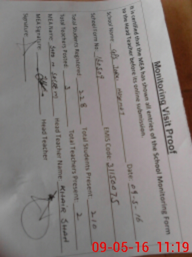 | Attendance Register | Head Teacher | MEA with School | Visit Proof |