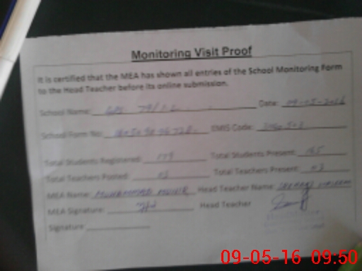 | Certified that this School was Inspected by the Undersigned MEA/DMO Today and the Information Stated Above is as Per Record. | |||||