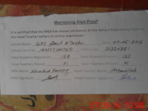 | EMIS Code: 31320381 | Name of School: GPS BAIT MAACHI | |||