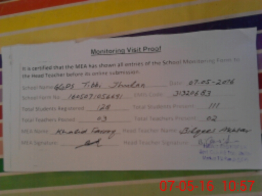 | Certified that this School was Inspected by the Undersigned MEA/DMO Today and the Information Stated Above is as Per Record. | |||||