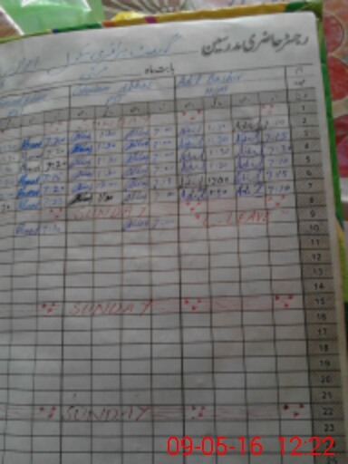 | CNIC | Full Name | Designation | R/C | Absence During Last Calender Month |
