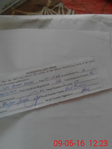| Attendance Register | Head Teacher | MEA with School | Visit Proof |