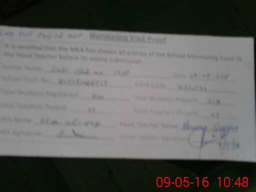| Attendance Register | Head Teacher | MEA with School | Visit Proof |