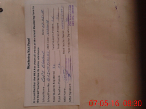 | Attendance Register | Head Teacher | MEA with School | Visit Proof |