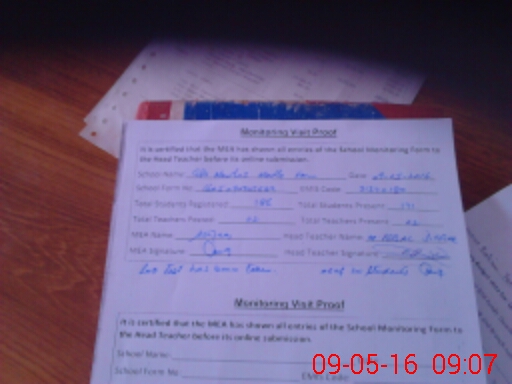 | Attendance Register | Head Teacher | MEA with School | Visit Proof |