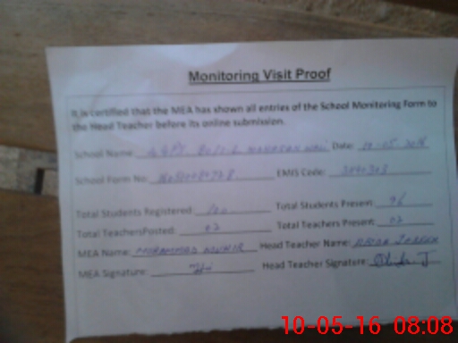 | Attendance Register | Head Teacher | MEA with School | Visit Proof |