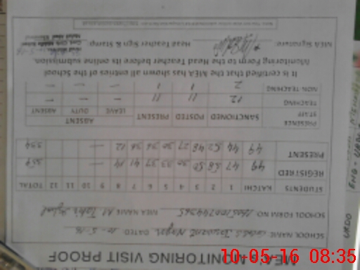 | Attendance Register | Head Teacher | MEA with School | Visit Proof |