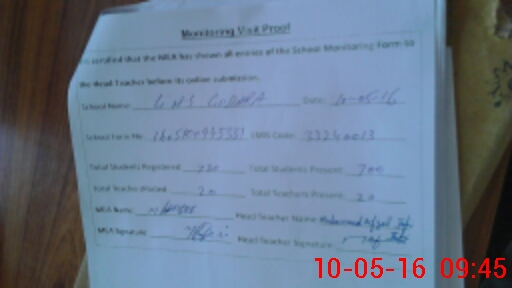 | Certified that this School was Inspected by the Undersigned MEA/DMO Today and the Information Stated Above is as Per Record. | |||||