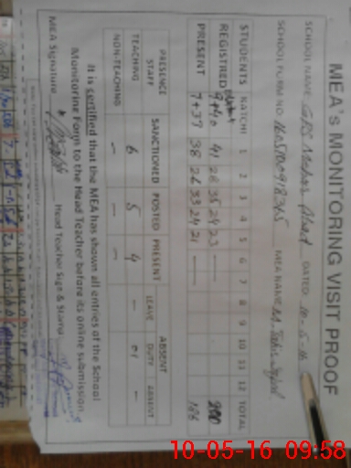 | Certified that this School was Inspected by the Undersigned MEA/DMO Today and the Information Stated Above is as Per Record. | |||||
