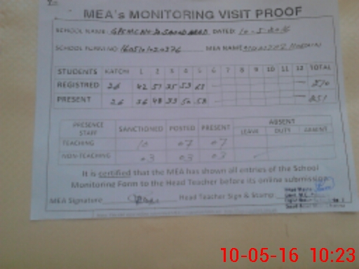 | Certified that this School was Inspected by the Undersigned MEA/DMO Today and the Information Stated Above is as Per Record. | |||||